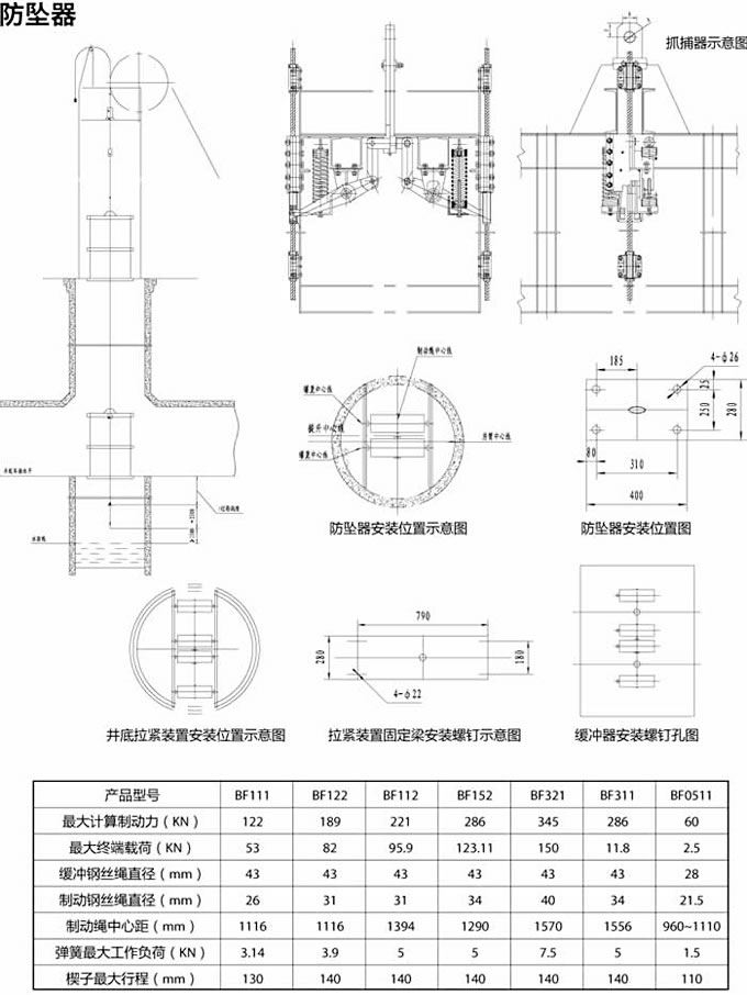 防墜器是單繩提升中的一種重要安全設備。在提升過程中,由于某種原因,提升鋼絲繩段繩或連接裝置斷裂,它能自動抓住制動繩,使罐籠平穩(wěn)停住,不致墜入井底,從而保證人員的安全和提升設備不致?lián)p壞。